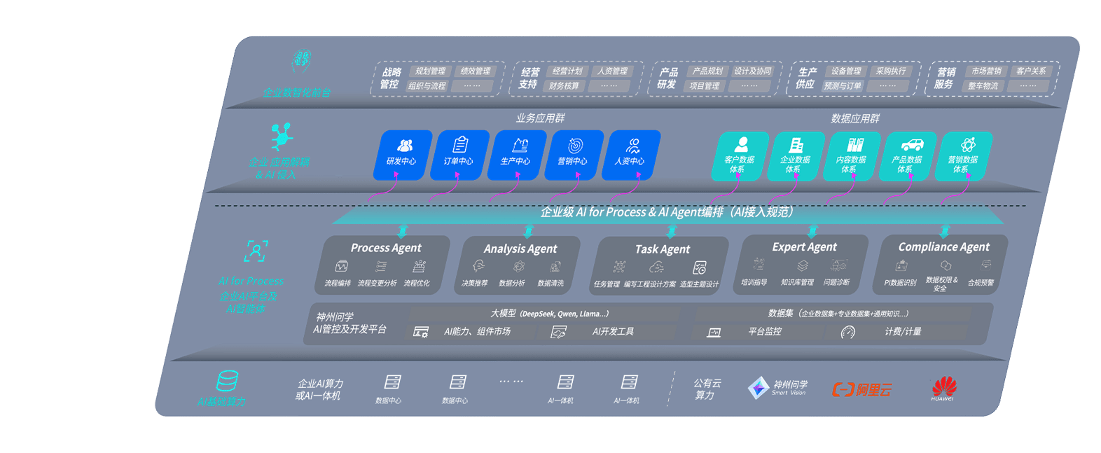 耀世娱乐问学智车解决方案是一套基于AI技术的汽车行业智能化系统,,,覆盖从底层算力到顶层AI应用的全栈方案。。。。方案由算力层、、、模型层和应用层组成:算力层,,,,方案支持多种一体机配置,,,,具备云端灵活部署、、多云适配以及动态优化计算资源的能力;模型层,,,,耀世娱乐问学平台版提供了企业级AI应用一站式构建与管理平台,,,,支持基于后训练强化技术的汽车企业专属模型的训练、、、、评测和运营;应用层,,耀世娱乐问学DeepSeek版提供包括超级员工、、智能招采、、、、智能营销、、、、智能客服、、AI for BI等一系列解决方案,,,,可助力汽车行业实现数字化转型,,,让管理更智能、、、、响应更敏捷。。。。